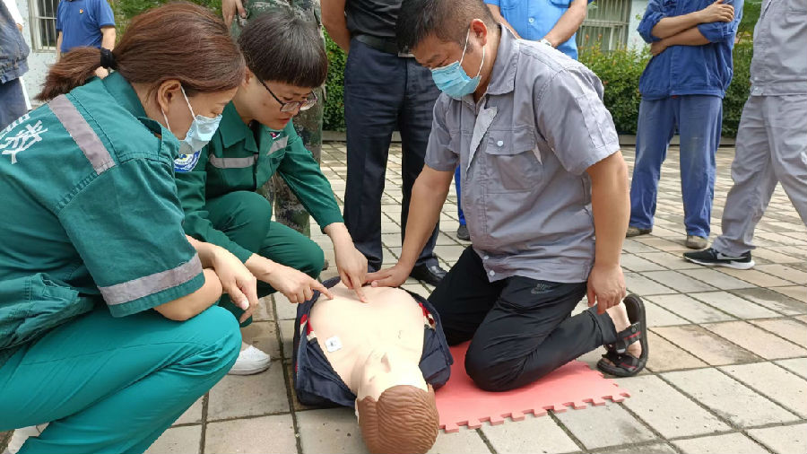 義診現(xiàn)場,專家們仔細(xì)聆聽職工對癥狀的陳述,認(rèn)真分析病情,為現(xiàn)場200余名職工提供切實可行的診療建議;醫(yī)護(hù)人員為職工測量血壓、血糖,并組織開展心肺復(fù)蘇實操演練。