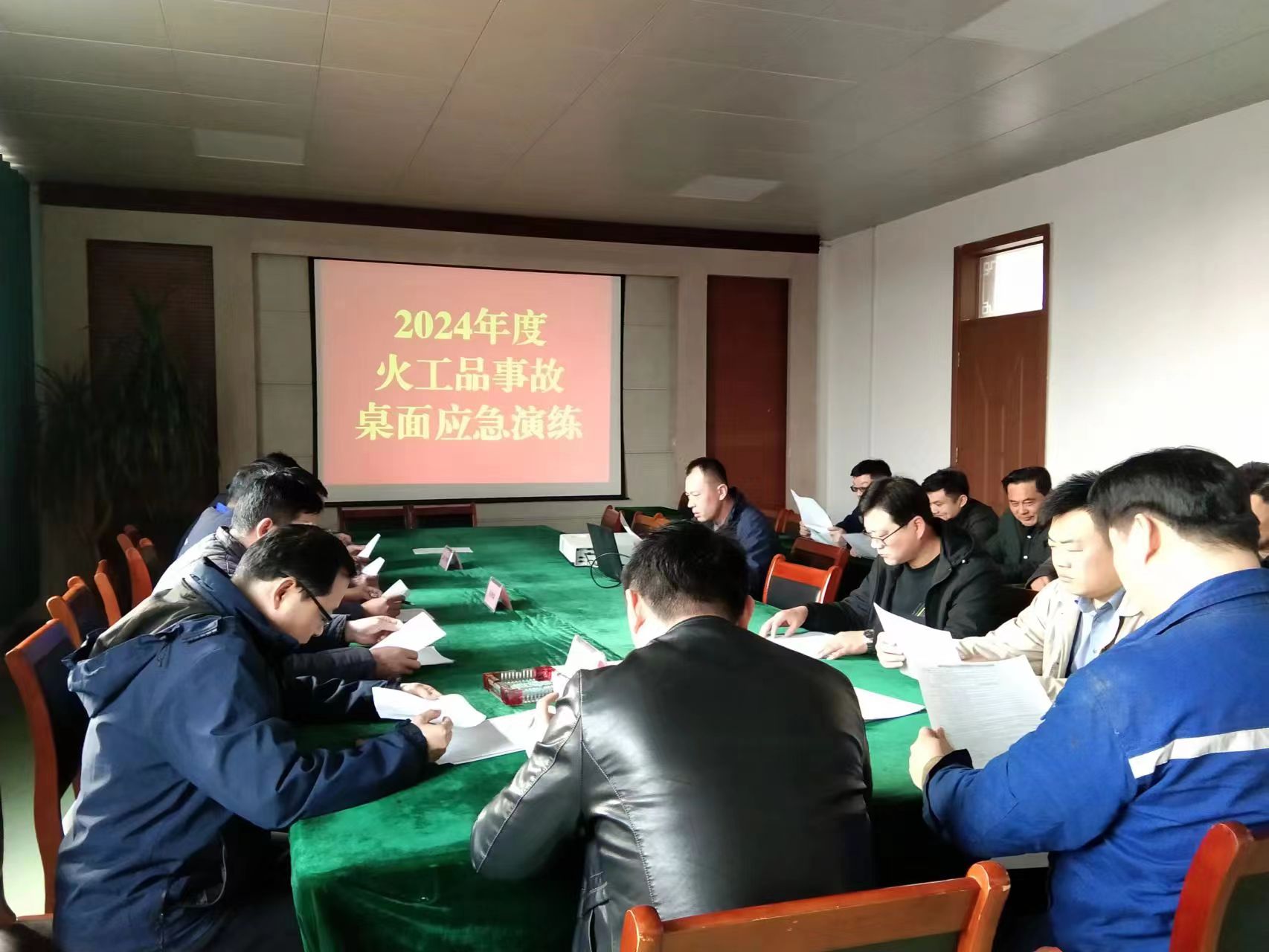 下午3時(shí)40分,安全副總杜磊同志宣布桌面應(yīng)急演練開始,拉開了應(yīng)急演練活動的序幕。隨著演練險(xiǎn)情的桌面推演,指揮部立即啟動《火工品事故現(xiàn)場處置方案》,成立了應(yīng)急救援指揮部,設(shè)置了搶險(xiǎn)救災(zāi)組、技術(shù)專家組、安全監(jiān)督組、物資供應(yīng)組、警戒保衛(wèi)組、信息發(fā)布組等6個(gè)應(yīng)急工作組,各工作組各負(fù)其責(zé),第一時(shí)間投入?yún)⒀葸^程中進(jìn)入各自演練角色。